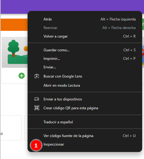 Debemos dar clic derecho en cualquier parte de nuestra página para que se nos desplieguen estas opciones y seleccionemos «Inspeccionar»