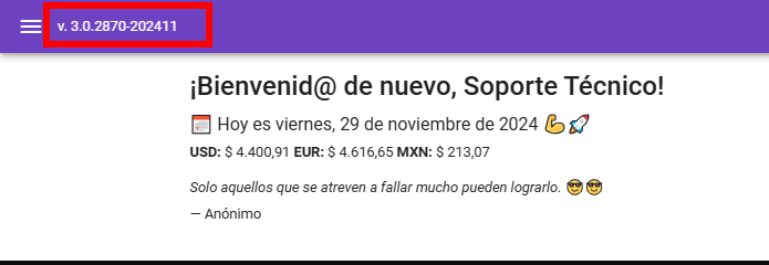 Por ejemplo, en la siguiente imagen se muestra la versión instalada en el mes de noviembre del año 2024.