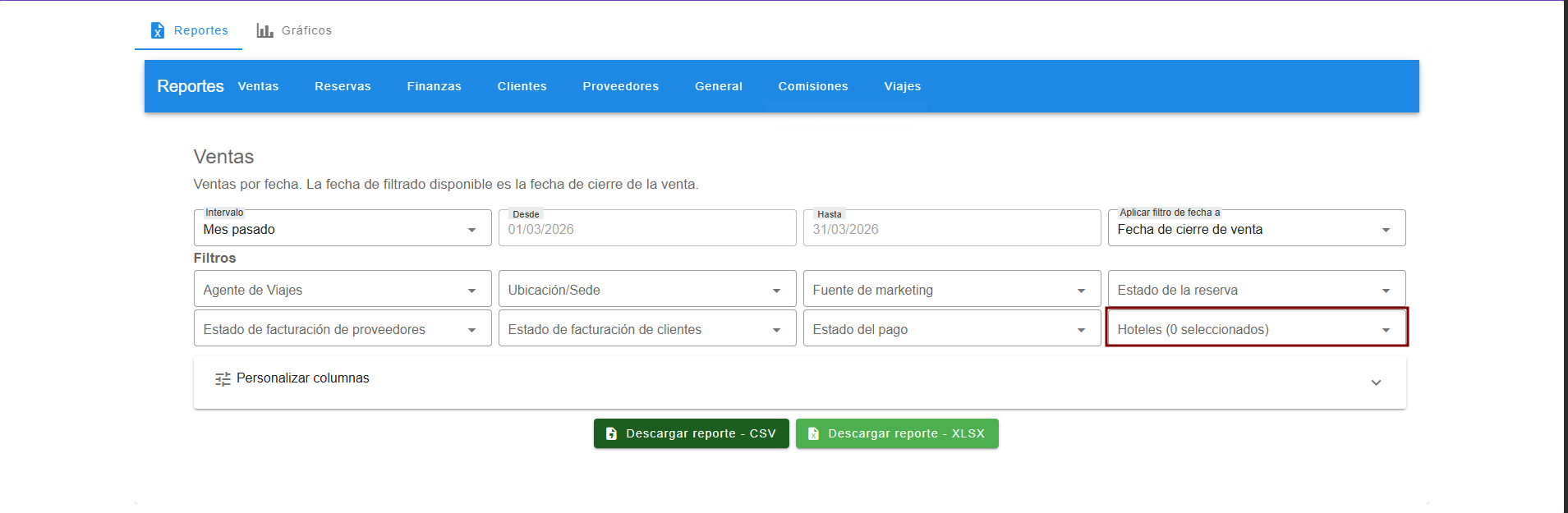 4. Nuevo filtro por hoteles en el reporte de ventas