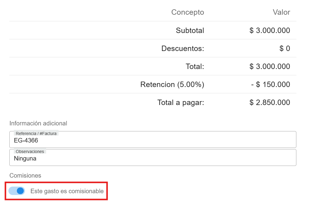 Ahora es posible marcar las facturas de proveedores como no comisionables. Cuando se utiliza esta opci贸n, el valor de dichas facturas se descuenta autom谩ticamente de la base comisionable al calcular la comisi贸n del agente, permitiendo un control m谩s preciso y justo sobre los ingresos por comisi贸n.