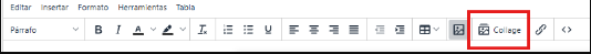 La funcionalidad Generar Collage permite insertar múltiples imágenes organizadas en un solo bloque visual dentro de los editores de texto enriquecido del sistema. Esta opción facilita la creación de collages personalizables mediante diseños predeterminados, opciones avanzadas de configuración visual y una previsualización previa, integrando el resultado final como un único elemento dentro del contenido para mejorar la presentación y el impacto visual.