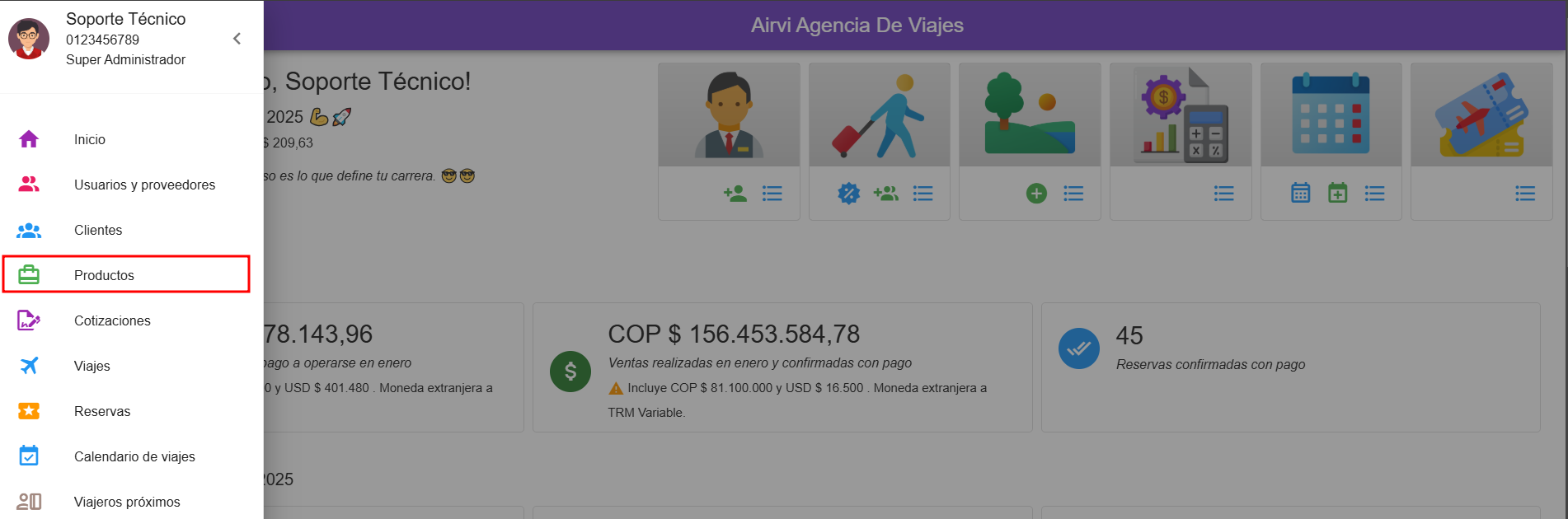 Dentro del módulo de productos, se crean y almacenan las plantillas destinadas a la elaboración de cotizaciones y reservas de viajes.