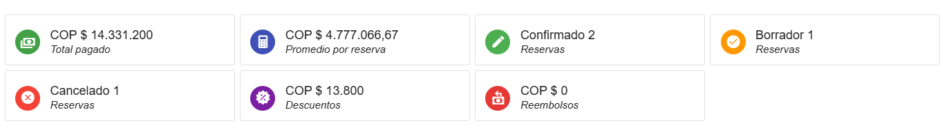 Promedio por reserva: Indica el valor promedio pagado por cada reserva realizada.