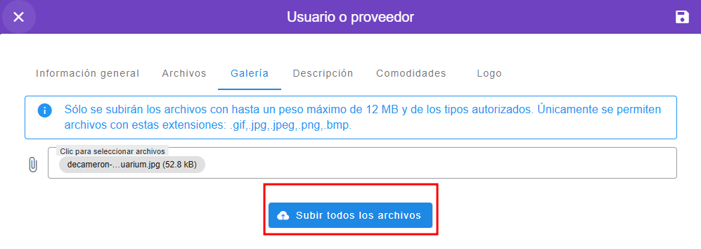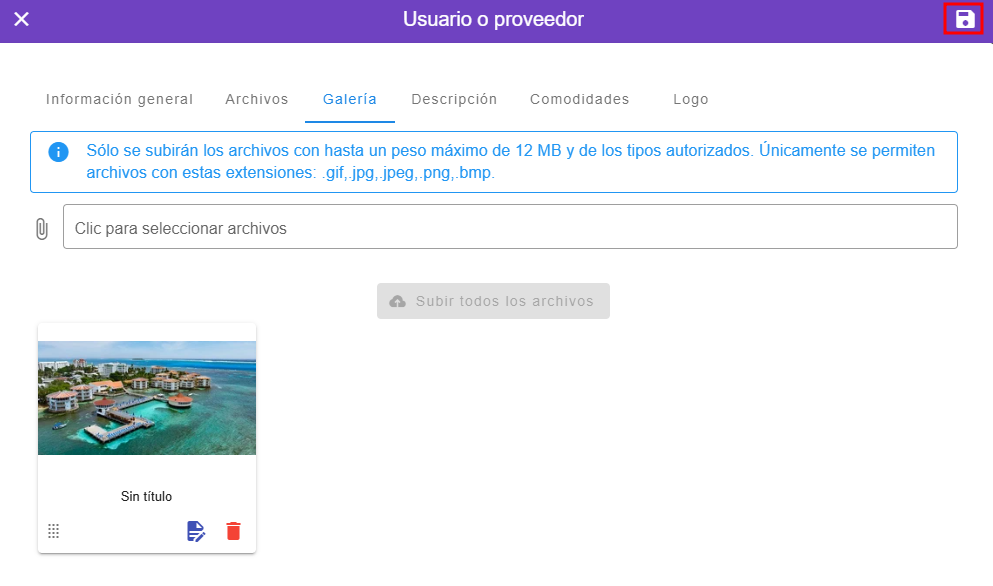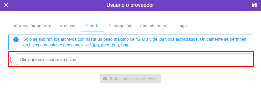 - Hacer clic en el apartado de "Galeria" ubicado en la parte superior de la ventana de usuarios y proveedores