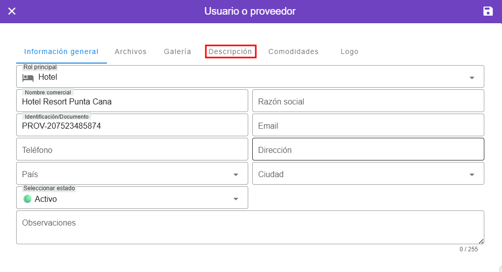 ¿Cómo agregar una descripción a un hotel?