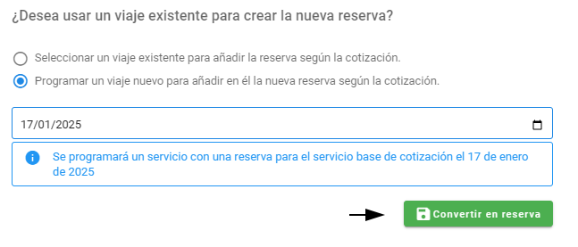 - Clic en el botón Convertir en reserva.