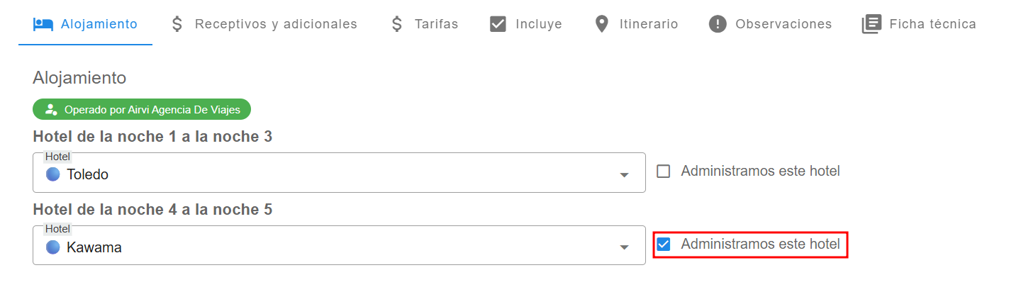 - Si el producto incluye noches de alojamiento, puedes especificar los períodos de alojamiento.
