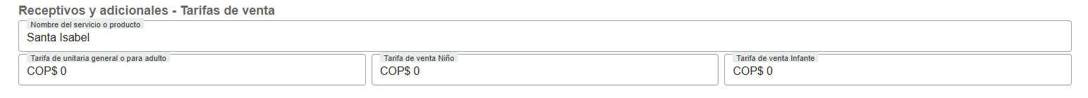 - Nombre del Producto/Servicio: Introduce un nombre para el producto o servicio.