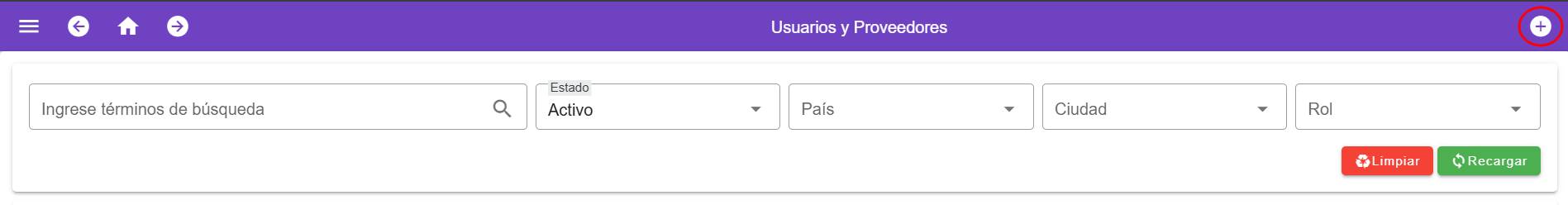 1. Ingrese al módulo de Usuarios y proveedores desde el ícono de Usuarios y proveedores de la página principal.
