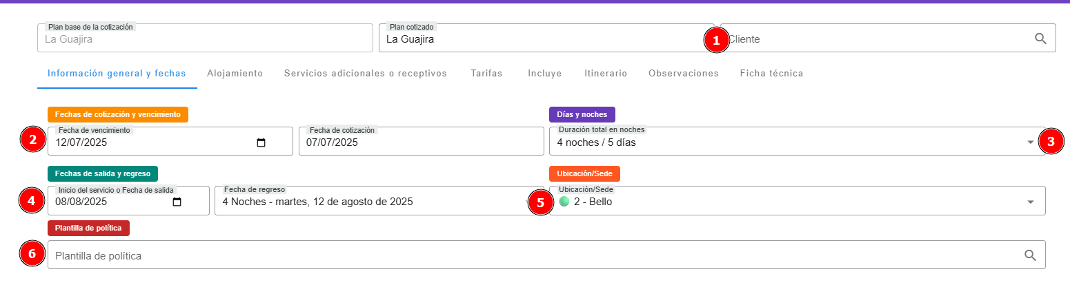 - Establece el titular de la cotizaci贸n y las fechas relevantes.