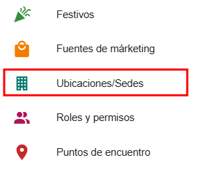 Para ingresar al módulo de Ubicación/Sede, haz clic en el menú principal y luego selecciona la opción Ubicación/Sede