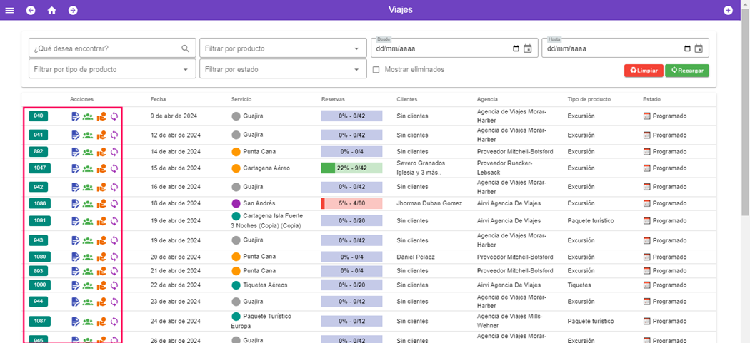 - También se puede acceder a través del menú desplegable o desde la página principal seleccionando el módulo de viajes, que proporciona una vista de todos los viajes programados.