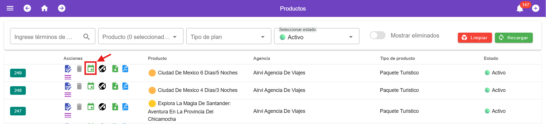 Una vez creado el producto, accede a las funciones disponibles (Editar, Eliminar, Programar o Duplicar).