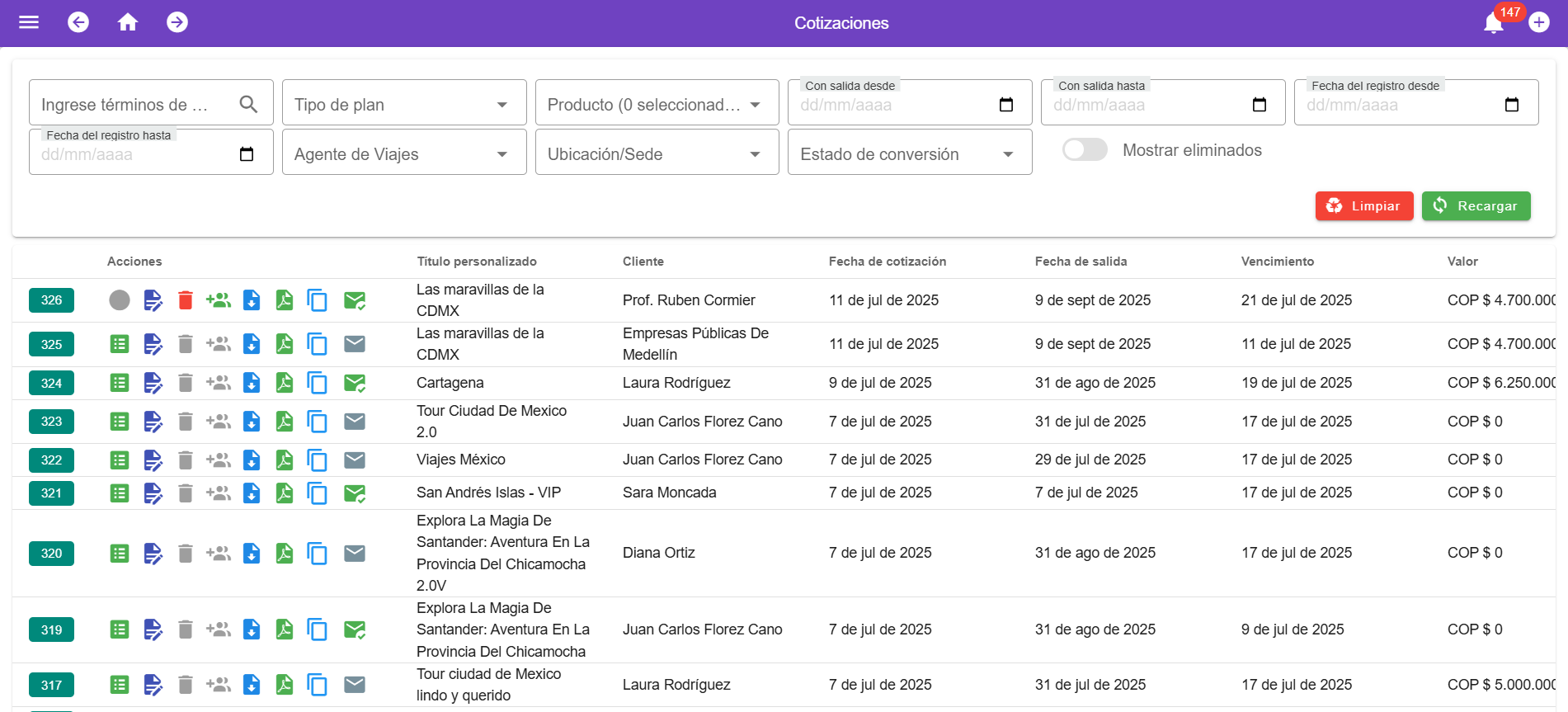 - Ingrese al módulo de cotizaciones desde el ícono de Cotizaciones de la página principal.