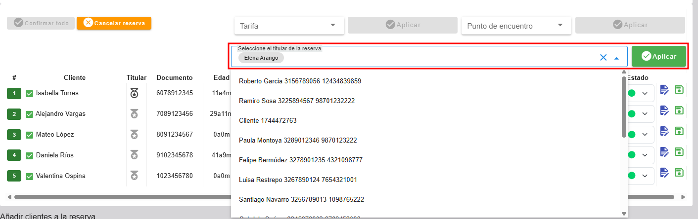 Para establecer el titular de la reserva, puedes optar por una de las dos opciones disponibles: