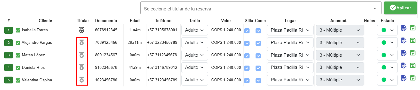- Pulsando el icono de una medalla que aparece junto al nombre de cada viajero en la reserva.聽