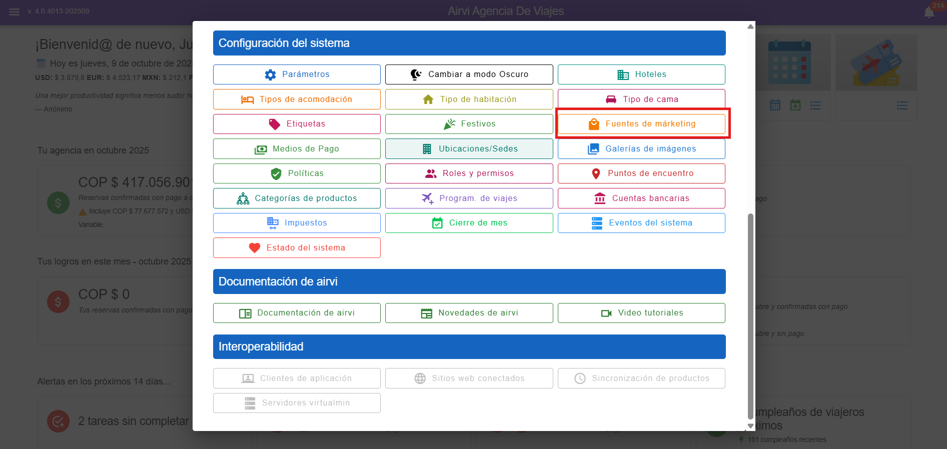 Este m贸dulo es accesible desde el men煤 principal y permite gestionar las fuentes de conocimiento, es decir, c贸mo los clientes conocen la empresa o el tour.