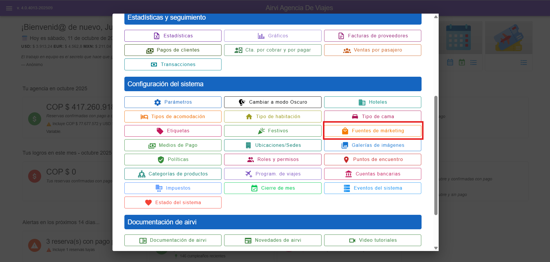 Este m贸dulo es accesible desde el men煤 principal y permite gestionar las fuentes de conocimiento, es decir, c贸mo los clientes conocen la empresa o el tour.