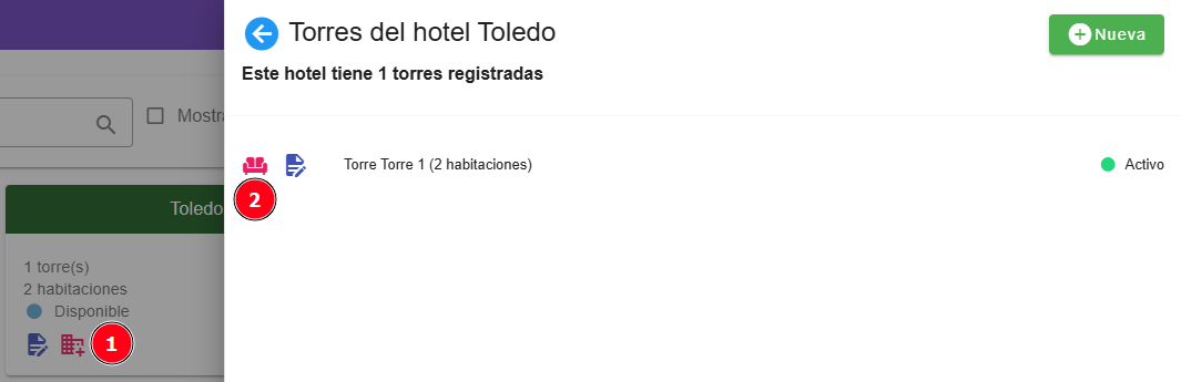 Se podr谩 acceder desde el men煤 principal, haciendo clic en el 铆cono de Hamburguesa y luego seleccionando el bot贸n Hoteles: