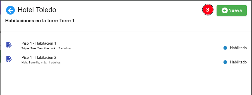 Esto abrir谩 una ventana donde deber谩s completar la informaci贸n de la habitaci贸n a crear. Llena los campos con los siguientes detalles: