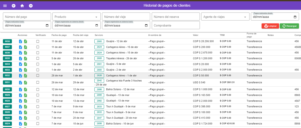 Brinda una visi贸n integral de los pagos realizados por los clientes en relaci贸n con sus reservas, lo que permite un seguimiento preciso del estado de las reservas y una gesti贸n eficiente de los pagos.