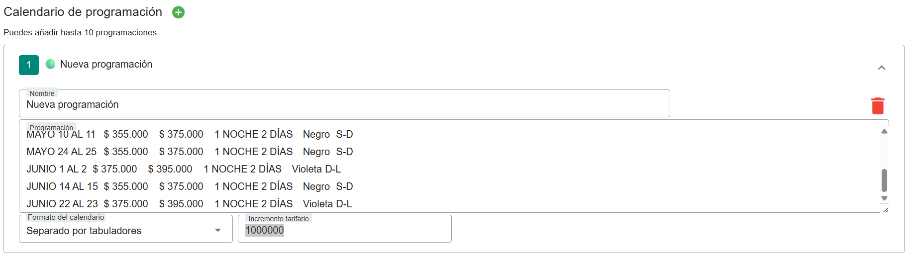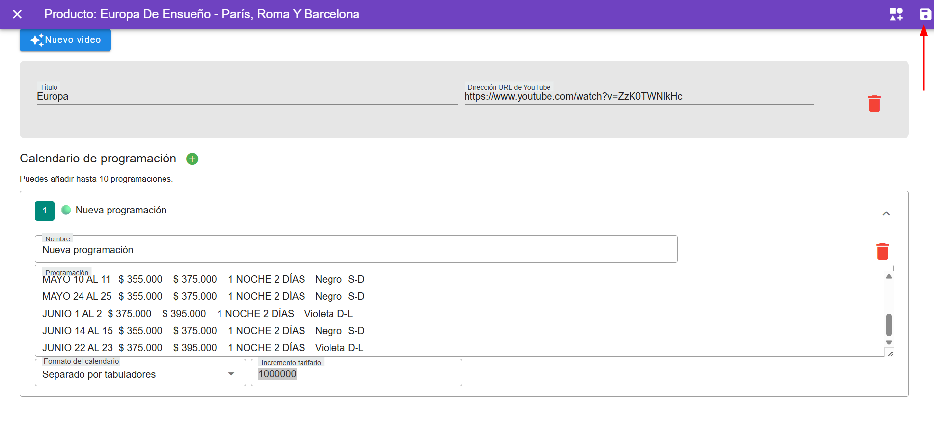 • Calendario de programación: permite registrar, administrar y publicar fechas de salida para productos turísticos de forma clara y estructurada. Este módulo es clave para la planificación de temporadas, visualización de tarifas y organización de itinerarios comerciales.