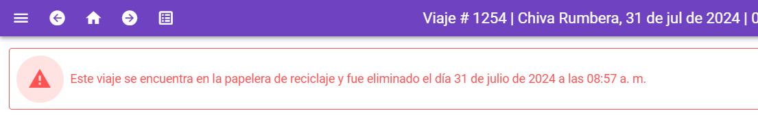 Viaje Eliminado: Al intentar acceder al panel de reservas de un viaje que ha sido eliminado, se mostrar谩 un mensaje de error que te notificar谩 que el viaje ha sido eliminado. Esto significa que el viaje ya no est谩 disponible para gestionar reservas.