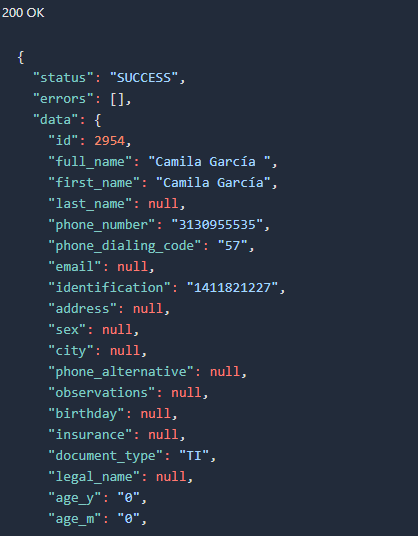 Si todo está correcto, obtendrá un código 200 OK con los datos solicitados.