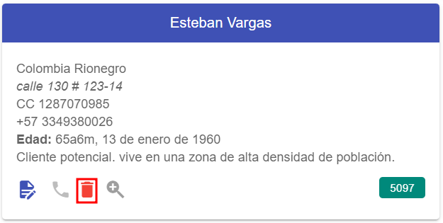 • Al hacer clic en el ícono de eliminar, el sistema no borra el registro de forma definitiva por razones de trazabilidad.