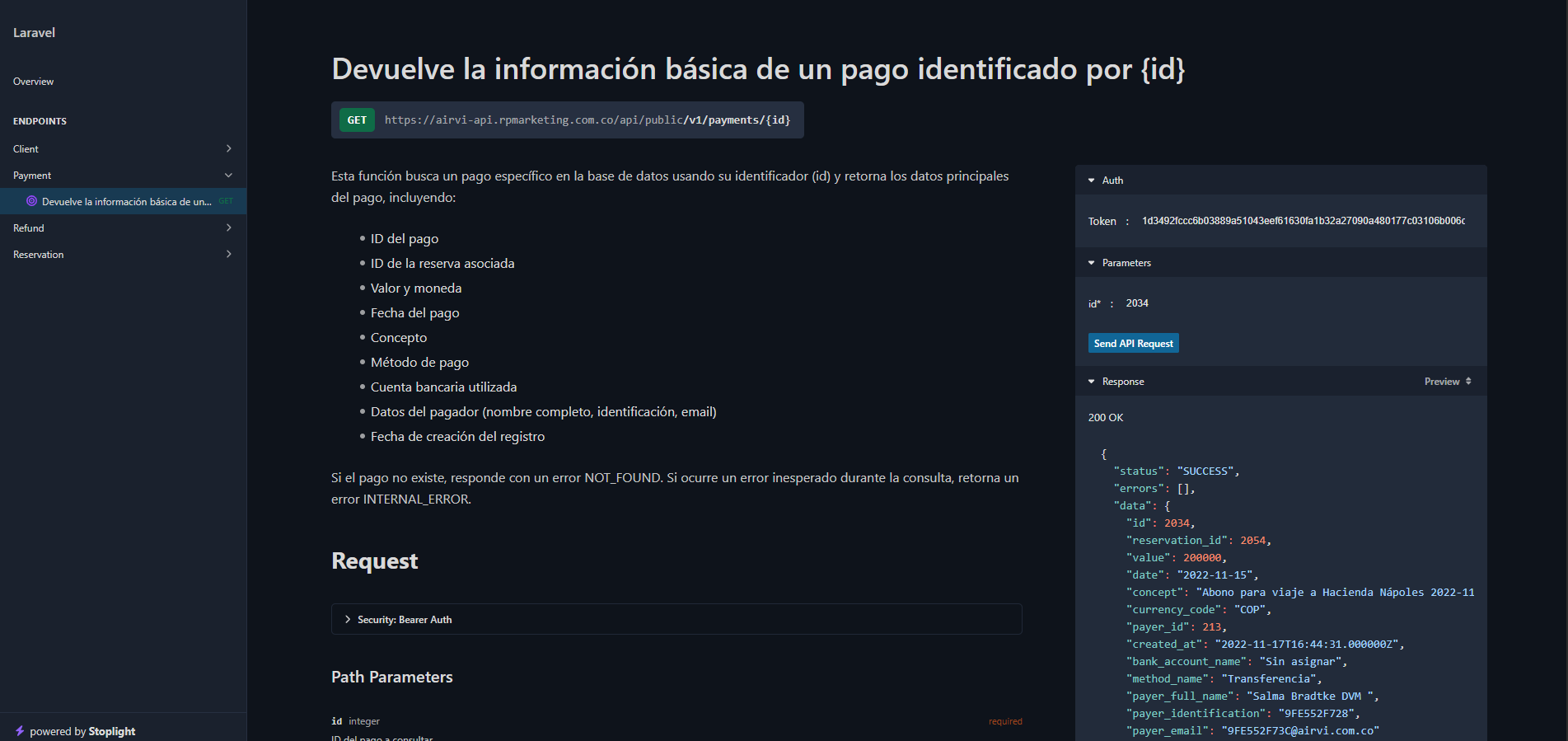 El m贸dulos de Pagos (Payments)聽 permiten acceder a los movimientos financieros asociados a reservas.聽Comparten la misma estructura de autenticaci贸n y respuesta que los m贸dulos anteriores.