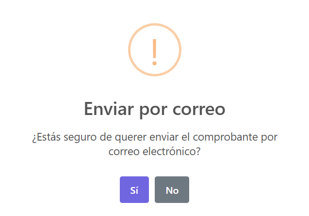 - El sistema mostrar谩 una ventana de confirmaci贸n, haz clic en "Si" para enviar el comprobante por correo electr贸nico