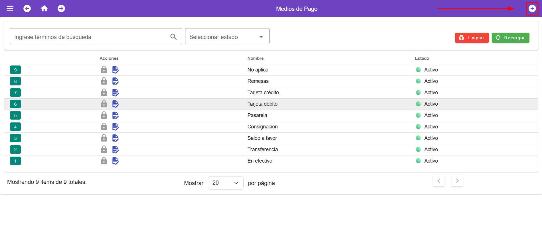 Para crear un medio de pago, nos dirigimos al men煤 de la parte izquierda y nos dirigimos a el m贸dulo de medios de pago