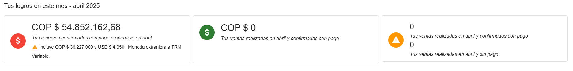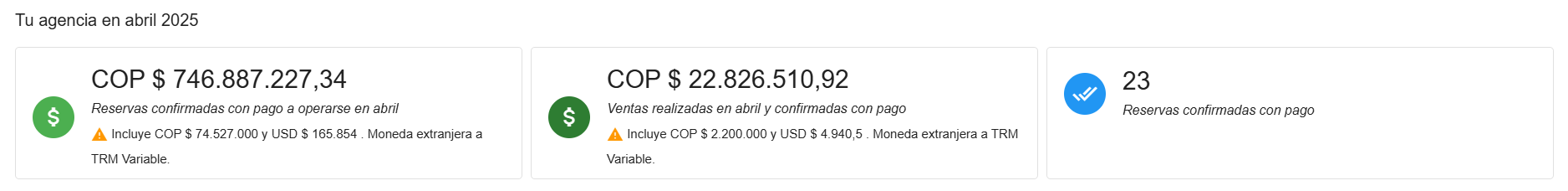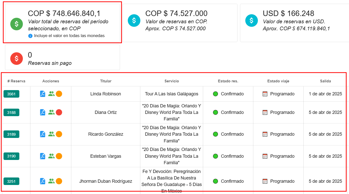 - Operatividad de la Agencia: Visualizaci贸n de las reservas programadas y registradas en el mes actual. Nota: Esta opci贸n solo est谩 disponible para usuarios con perfil de Administrador.