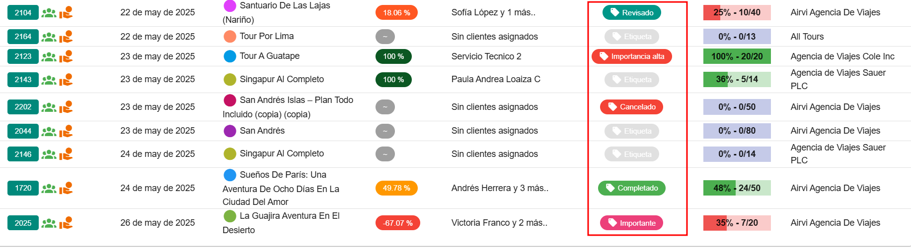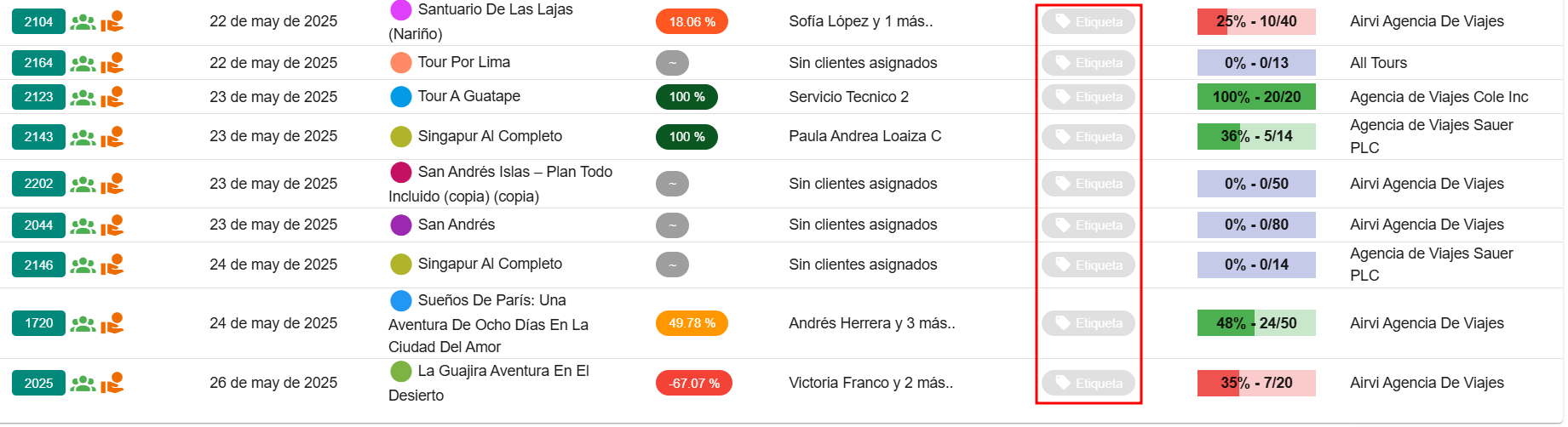 Nota: Tamb铆en podr谩s asignar etiquetas personalizadas a los viajes, mejorando la organizaci贸n y facilitando la b煤squeda de manera r谩pida y eficiente.