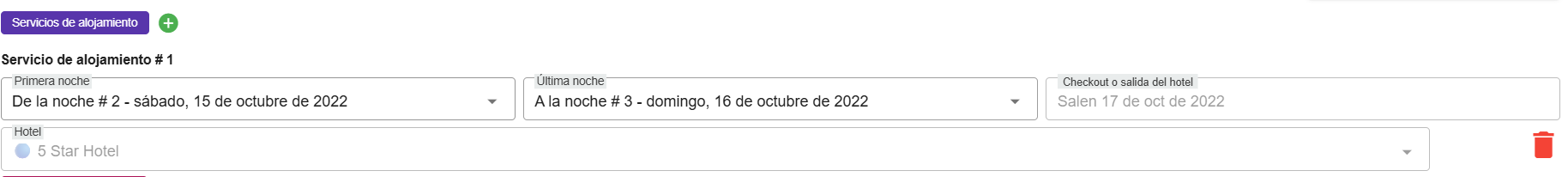 negociaci贸alojamiento: La secci贸ncon"Servicio de Alojamiento" permite detallar las noches incluidas en elclientehospedajeenycadalasgrupocondicionescreado.de salida del hotel.