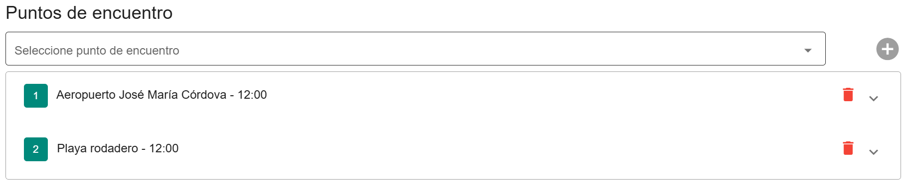 Antes de crear la reserva, se deben registrar todos los puntos de encuentro necesarios dentro del producto o servicio.