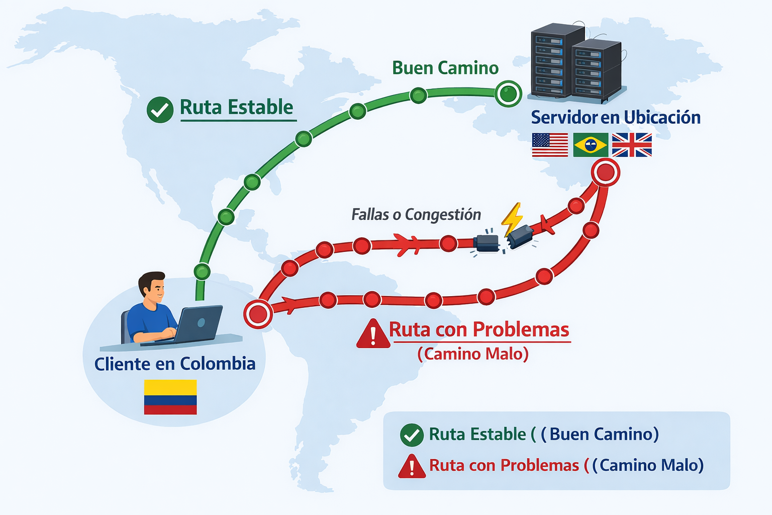 Cuando entras a una página web, tu internet sigue una “ruta” para llegar al sistema. A veces esa ruta puede estar lenta, congestionada o con alguna falla. Por eso desde tu red no carga, pero desde los datos del celular (que usan otro proveedor y otra ruta) sí funciona sin problema.