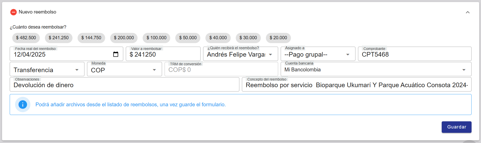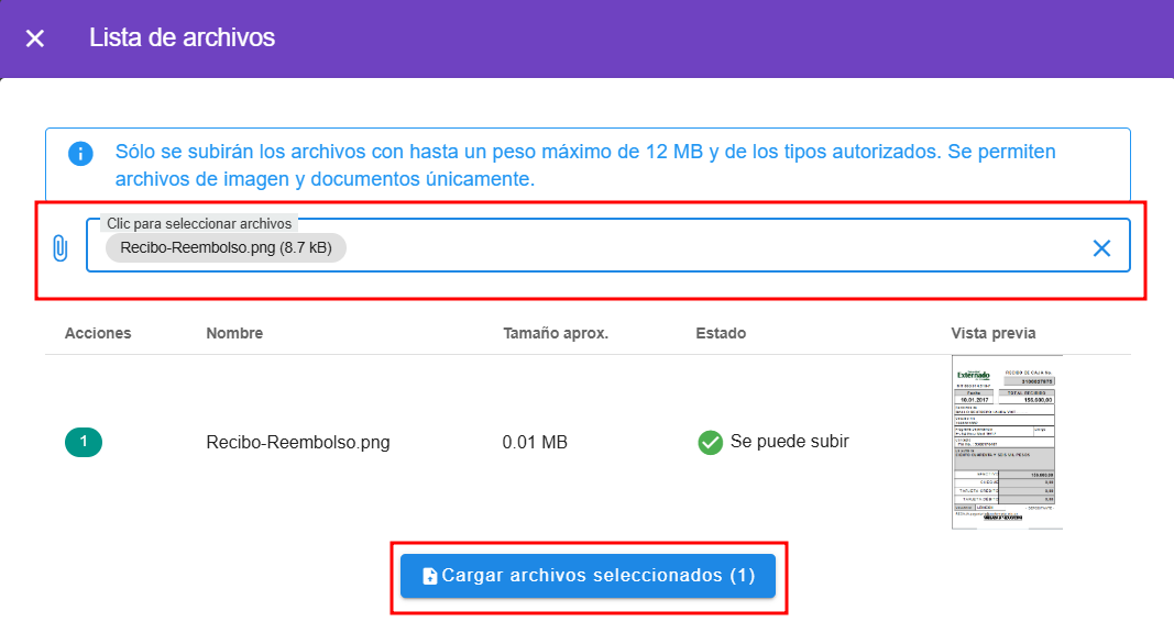 Adjuntar archivos a un reembolso
