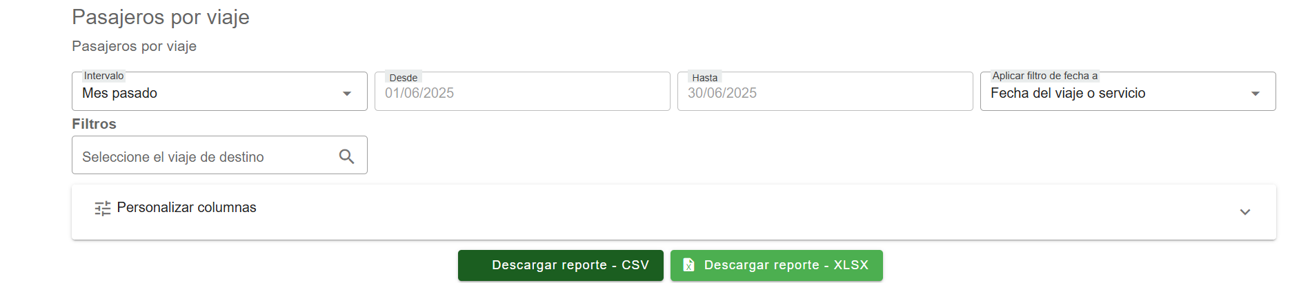 El Reporte de Pasajeros por Viaje permite consultar el listado completo de pasajeros asociados a un viaje espec铆fico, incluyendo informaci贸n como nombres, documentos de identidad, datos de contacto, estado de pago y observaciones registradas.