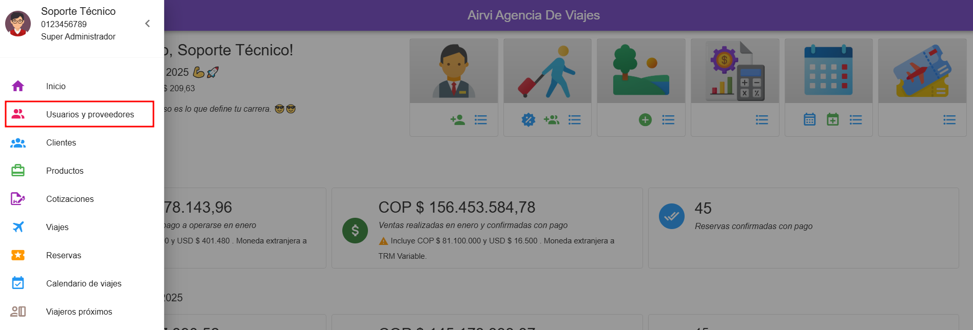 Este m贸dulo alberga todos los proveedores con los que la agencia tiene alg煤n tipo de relaci贸n comercial. Esto incluye hoteles, agencias de viajes mayoristas y minoristas, restaurantes, aerol铆neas, aseguradoras, agentes de viajes y freelancers, entre otros.