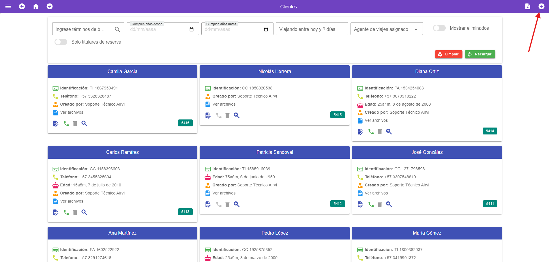 2. Dar clic en la parte superior derecha en el signo de (+) para crear un nuevo cliente